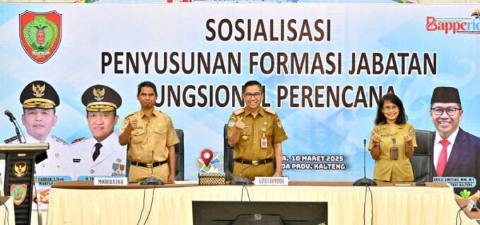 PALANGKA RAYA, kaltengonline.com – Pemerintah Provinsi Kalimantan Tengah melalui Badan Perencanaan Pembangunan, Riset, dan Inovasi Daerah (BAPPERIDA) menggelar Sosialisasi Penyusunan Formasi Jabatan Fungsional Perencana Tahun 2025. Kegiatan ini diselenggarakan secara luring di Aula BAPPERIDA Provinsi Kalimantan Tengah, Palangka Raya, serta secara daring melalui platform Zoom Meeting pada Senin (10/3/2025).