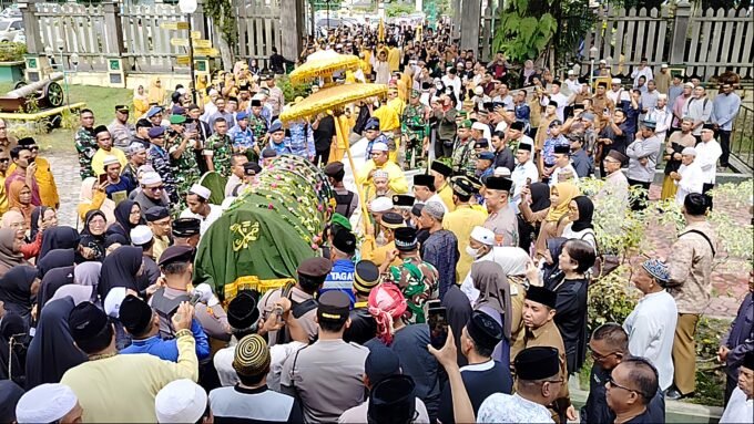 PANGKALAN BUN, kaltengonline.com – Kesedihan mendalam menyelimuti Kota Manis Pangkalan Bun pada Selasa (19/8/2025). Ribuan warga tumpah ruah di sekitar Istana Kuning hingga ke Komplek Pemakaman Kesultanan Kotawaringin untuk mengiringi kepergian almarhum Pangeran Muasjidinsyah bin Sultan Kotawaringin XIV. Sosok panutan ini dikenal luas sebagai tokoh yang penuh dedikasi dalam menjaga budaya dan persatuan di Kotawaringin Barat.