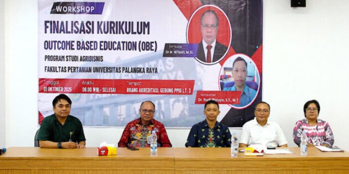 Palangka Raya, kaltengonline.com – Program Studi Agribisnis Jurusan Sosial Ekonomi Pertanian Fakultas Pertanian Universitas Palangka Raya menyelenggarakan Workshop Finalisasi Kurikulum Outcome Based Education (OBE) pada Rabu 1 Oktober 2025, bertempat di Gedung PPIG Lantai 3A, Ruang Meeting A. Kegiatan ini menghadirkan sekitar 50 peserta yang terdiri atas dosen dan mahasiswa, dengan delapan dosen sebagai tim penyusun kurikulum.