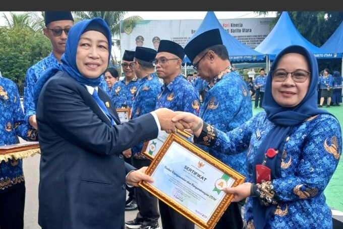 Penghargaan tersebut diserahkan langsung oleh Bupati Barito Utara, H. Shahaluddin, usai Upacara HUT ke-54 Korpri di halaman Kantor Bupati, Senin (1/12/2025). Ketua DPRD Hj. Mery Rukaini turut hadir menyaksikan prosesi penyerahan penghargaan tersebut.