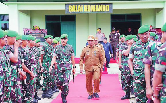 Bupati Barito Utara H. Shalahuddin turut menyambut kedatangan Dandim 1013/Muara Teweh Letkol Inf Nurwahid, Selasa (2/12).