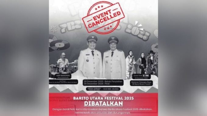 MUARA TEWEH, Kaltengonline.com – Atas arahan langsung Bupati Barito Utara, seluruh rangkaian hiburan, seni, dan musik dalam Festival Barito Utara 2025 resmi ditiadakan. Keputusan ini menunjukkan komitmen pemerintah daerah untuk menempatkan empati dan kepedulian sosial sebagai prioritas di tengah musibah yang melanda sejumlah wilayah Indonesia.