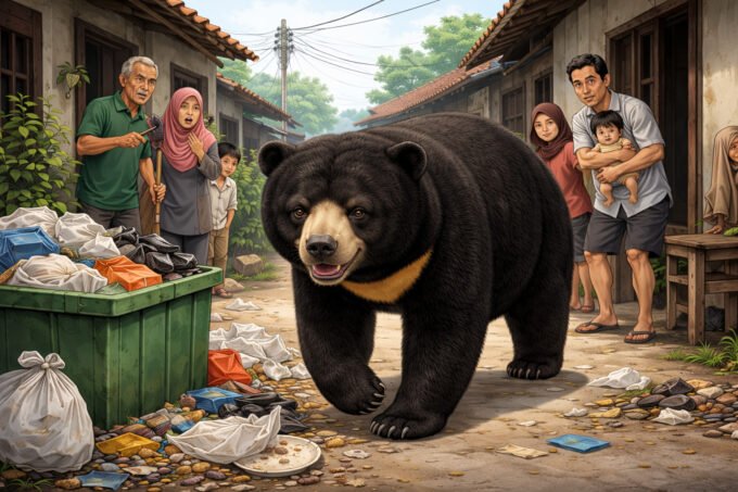 Pangkalan Bun — Kemunculan seekor beruang madu berukuran besar di kawasan permukiman warga Desa Karang Mulya, Kecamatan Pangkalan Banteng, Kabupaten Kotawaringin Barat (Kobar), memicu keresahan serius di tengah masyarakat. Satwa liar tersebut dilaporkan berulang kali memasuki kampung dan kebun warga dalam beberapa waktu terakhir, Jumat (2/1).