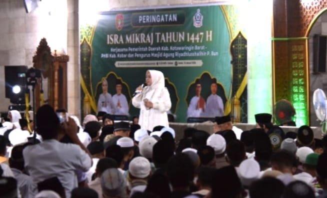 Pangkalan Bun, kaltengonline.com – Ribuan jamaah dengan penuh antusias memadati Masjid Agung Riyadlush Shalihin, Pangkalan Bun, saat Pemerintah Kabupaten Kotawaringin Barat (Pemkab Kobar) menggelar peringatan Isra Mikraj Nabi Muhammad SAW 1447 Hijriah, Jumat (16/1). Sejak sore hari, masyarakat dari berbagai penjuru datang berbondong-bondong untuk mengikuti majelis ilmu dan shalawat tersebut.