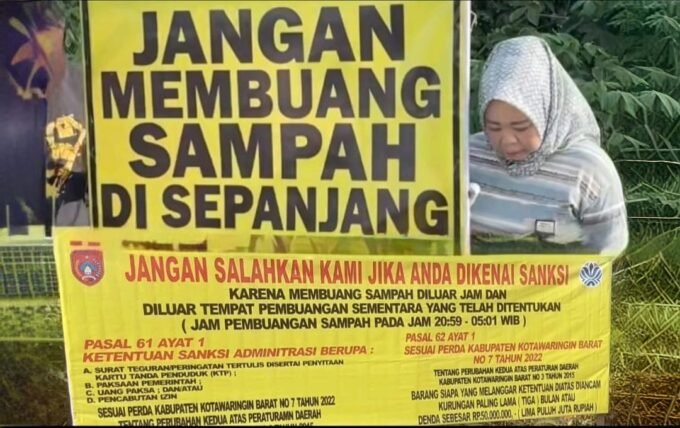 Ketentuan itu diatur dalam Peraturan Daerah Kabupaten Kotawaringin Barat Nomor 7 Tahun 2022 tentang Pengelolaan Sampah. Dalam Pasal 61 ayat (1) disebutkan larangan membuang sampah tidak pada tempatnya, sementara Pasal 62 ayat (1) mengatur sanksi berupa sanksi administrasi hingga denda maksimal Rp 50 juta bagi pelanggarnya.