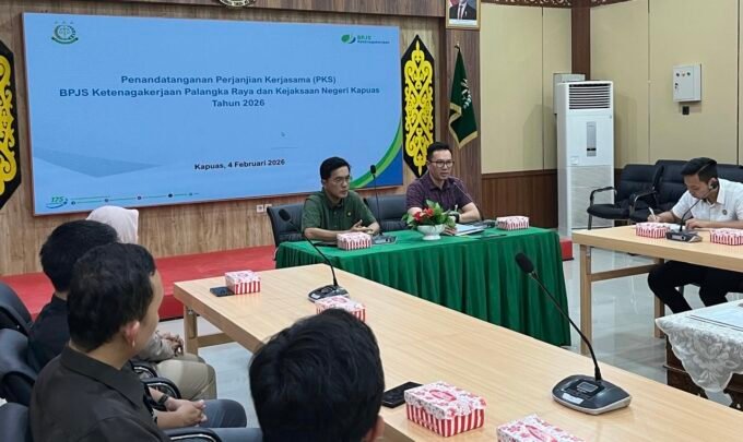 PALANGKA RAYA, kaltengonline.com – BPJS Ketenagakerjaan Palangka Raya menandatangani Perjanjian Kerja Sama (PKS) dengan Kejaksaan Negeri Kapuas sebagai upaya memperkuat penegakan kepatuhan terhadap ketentuan kepesertaan BPJS Ketenagakerjaan sesuai dengan peraturan perundang-undangan yang berlaku. Penandatanganan PKS tersebut dilaksanakan di Kantor Kejaksaan Negeri Kapuas, Kalimantan Tengah, Kamis (4/2/2026).