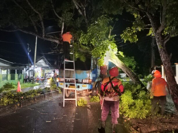 Setelah bekerja hingga pukul 20.45 WIB, petugas akhirnya berhasil menyingkirkan batang pohon dan memastikan kondisi jalan kembali aman dilalui. Tidak ada korban jiwa dalam kejadian ini, namun masyarakat diimbau tetap waspada terhadap potensi pohon tumbang saat cuaca ekstrem.(bob)