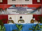 NANGA BULIK-Bupati Lamandau H Hendra Lesmana membuka kegiatan musyawarah rencana pembangunan (Musrenbang) tingkat kecamatan di kecamatan Menthobi Raya. Kegiatan yang digelar, Selasa