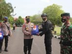 PALANGKA RAYA- Kapolda Kalteng Irjen Pol Dedi Prasetyo memimpin pelepasan personel yang akan membagikan paket sembako kepada warga yang menjalani isolasi mandiri