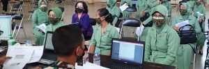 PALANGKA RAYA-Yonif R 631/Atg mulai melaksanakan vaksinasi tahap pertama untuk ibu-ibu Persit Kartika Chandra Kirana di Aula Disdik Provinsi Kalteng, Kamis (03/06/2021).