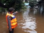 PURUK CAHU – Bhabinkamtibmas Polsek Permata Intan Polres Murung Raya, Briptu Susanto monitoring wilayah rawan banjir di DAS Barito wilayah hukum Polsek