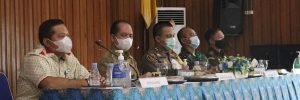 KUALA KAPUAS-Wakil Ketua I DPRD Kabupaten Kapuas, Yohaes, menghadiri rapat koordinasi percepatan penanganan pandemi Covid 19 Kabupaten Kapuas, Selasa (8/6). Rapat dipimpin