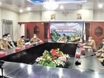 KUALA PEMBUANG-Wakil Bupati Seruyan, Hj Iswanti melalui zoom cloud meeting mengikuti Rapat Koordinasi Nasional Pengendalian Inflasi Tahun 2021, di Aula Bappeda Kabupaten