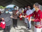 Puskesmas Panarung Bagikan Bendera ke Pengunjung