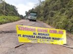 TAMIANG LAYANG-Jalan hauling PT Senamas Energendo Mineral (SEM) Rimau Group di Kabupaten Bartim, diportal. Aktivitas truk pengangkut emas hitam pun terhenti, Senin