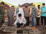 PALANGKA RAYA-Gubernur Kalimantan Tengah H Suginto Sabran meletakkan batu pertama pembangunan Musala Syarifah Fatmah Albahasyim di Jalan G Obos XIV, Palangka Raya,