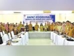 Palangka Raya, kaltengonline.com – Palangka Raya – Plt. Sekda Kalimantan Tengah Leonard S. Ampung bersama Kepala BKAD Prov. Kalteng Syahfiri mengikuti Rapat Monitoring dan Evaluasi Realisasi